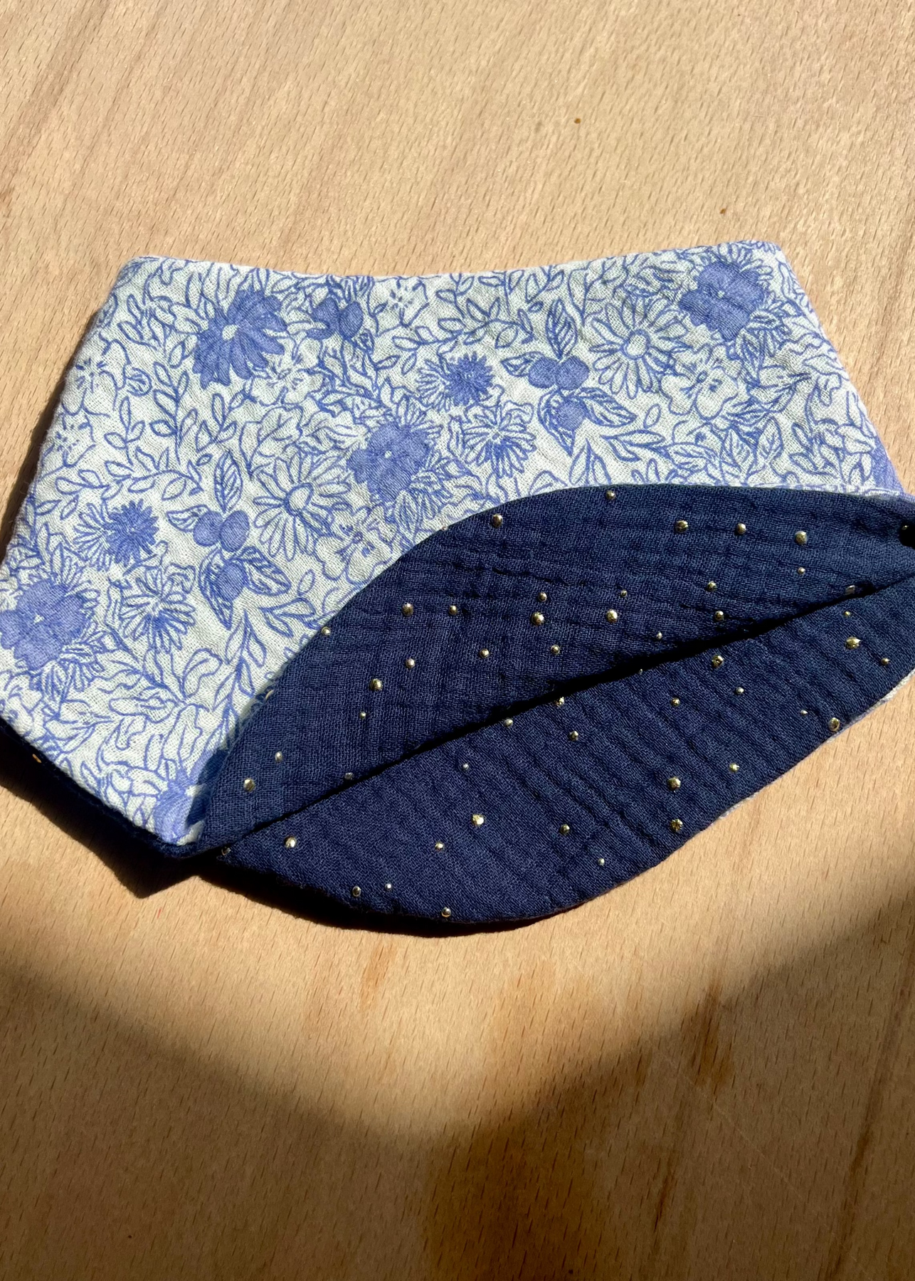 Our unique double bibs are made from 100% cotton Oeko Tex certified double gauze (a fabric you might know as muslin) with eight layers of super soft fabric protecting your baby's skin. They flip inside out to contain all the wet and mess inside the super absorbent fabric.