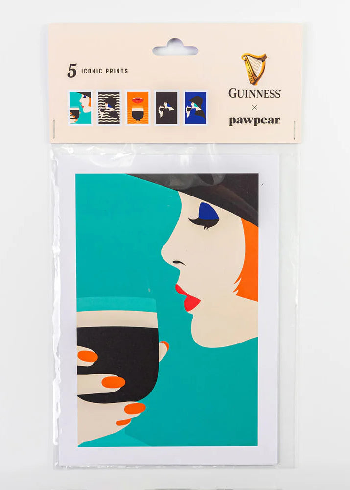 A Guinness X Pawpear collaboration, this set of 5 prints is inspired by an iconic 1970's Guinness advert.