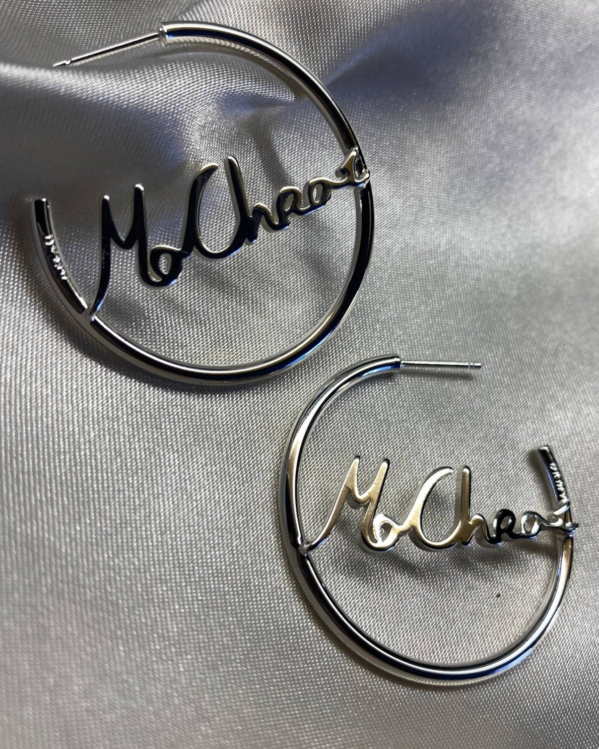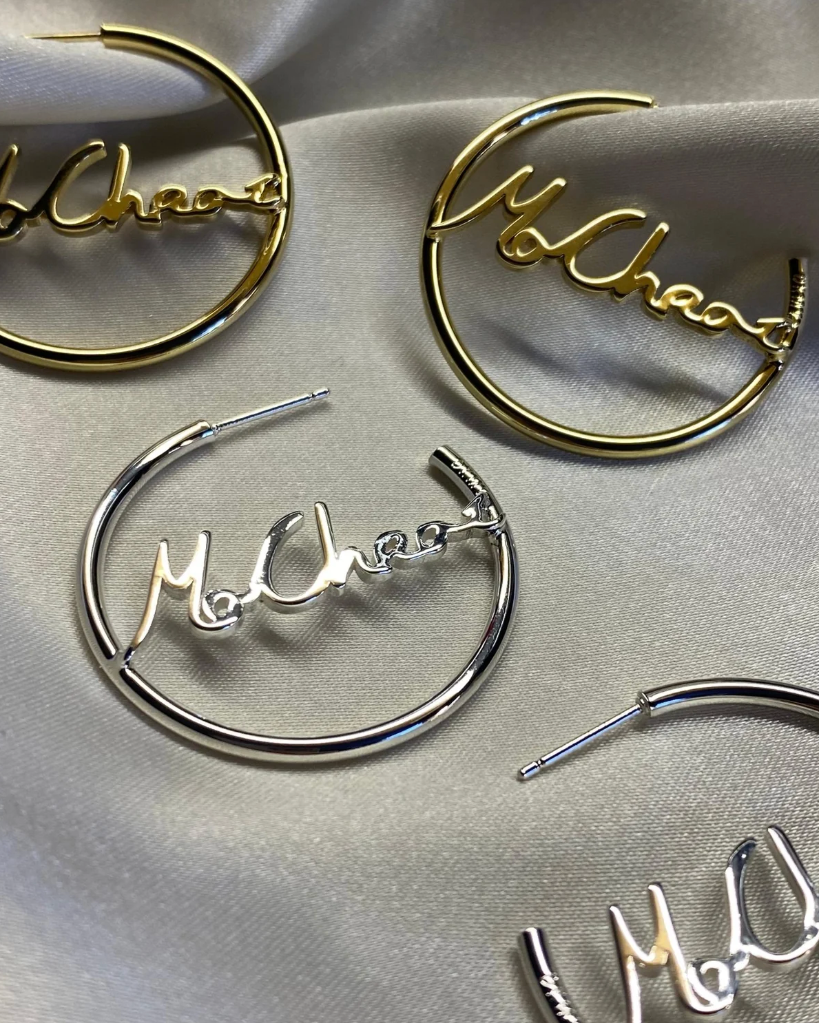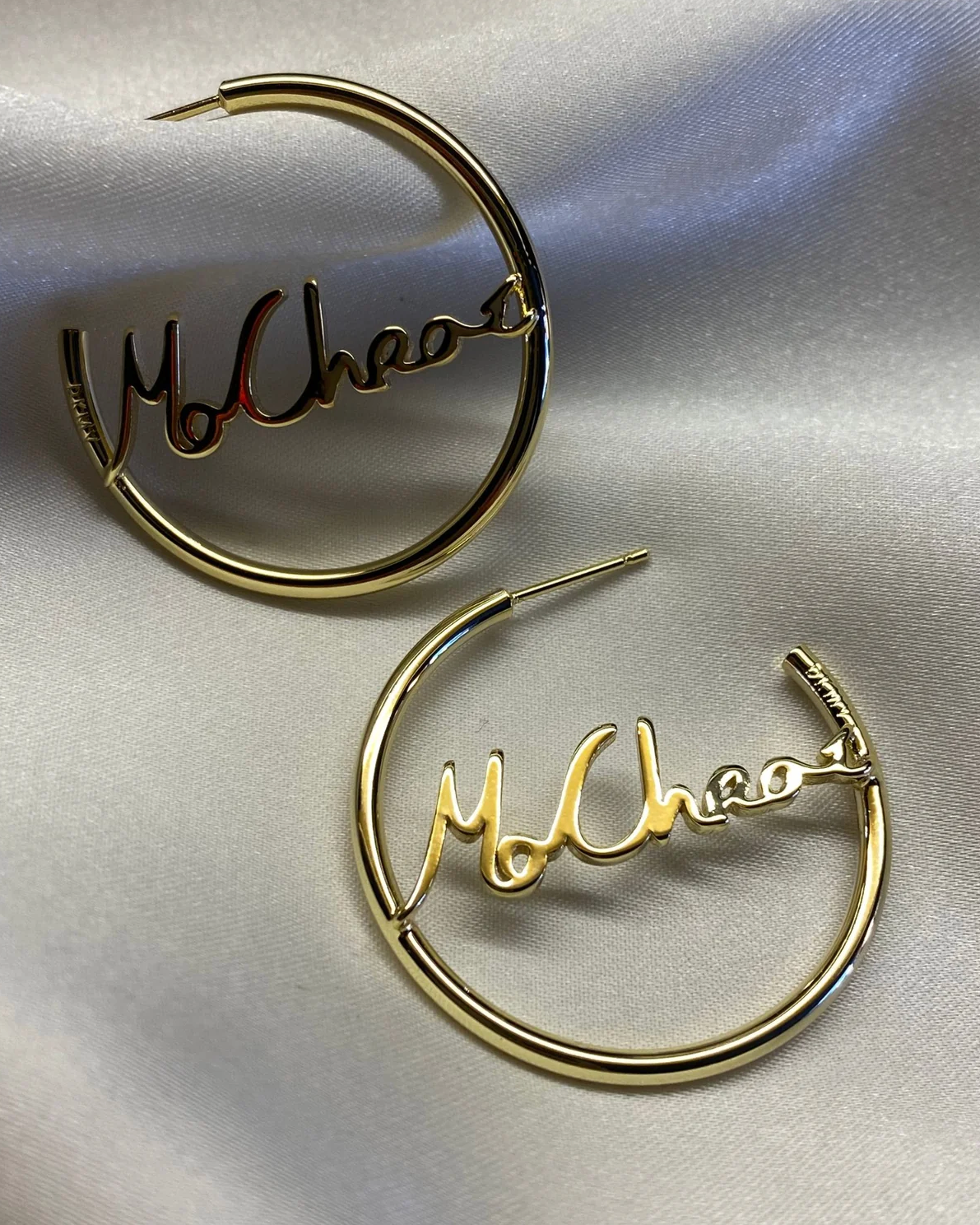 Delicate 2mm hoop earrings with Mo Chroí handwriting